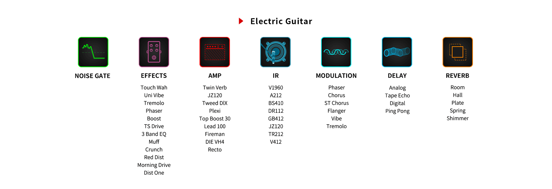 CLEAN – OVERDRIVE – DISTORTION – ACOUSTIC GUITAR SIMULATOR